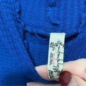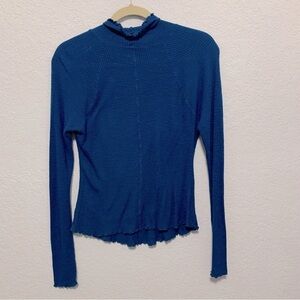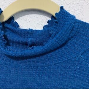 Intimately Free People Waffle Knit Thermal Blue Turtleneck Pullover Top