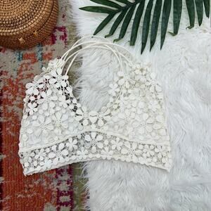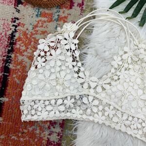 Intimately Free People White Flower Floral Lace Bralette Bra Medium Boho