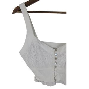 Intimately Free People White Lace Mother of Pearl Buttons Women Crop Blouse M