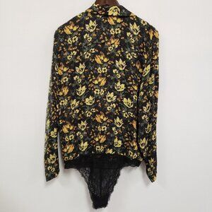 Intimately Free People Womens Elsa Printed Floral Bodysuit Size L Bohemian