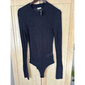 Intimately Free People Womens NWT Black Sunday Best Knit Long Sleeve Bodysuit L