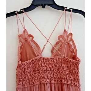 Intimately Free People Women's Sz S Rose Pink Adella Frilled Chemise Slip Dress