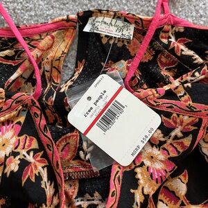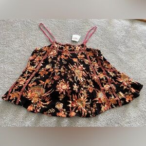 NWT Intimately Free People flowy tank in black and pink floral, size xs. Has a button closure in the back. Straps are adjustable.
