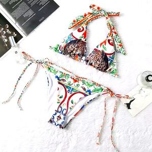 Look chic on the beach in this Sky Floral Ruffle Bikini. Appropriately placed ruffles for that flirty fun and sexy vibe! Foam-lined cups with supportive side boning Adjustable stretch straps included for multiple looks Quality stretch microfiber Imported