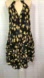 This sleeveless mini dress features a stylish halter neckline and a charming ruffled skirt, raw hem, keyhole perfect for a night out or cocktail event. The elegant black and cream color combination adds a touch of sophistication, making it an ideal choice for a wedding guest. Its playful design ensures a flattering and fashionable look.