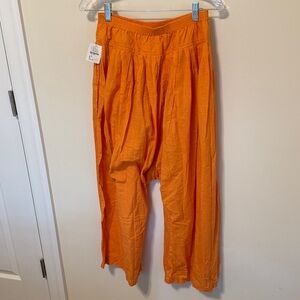 Intimately by Free People Women's Wide Leg Orange Tangerine Harem Pants with Pockets / Size S / Brand NWT / 100% Cotton / Chic and Comfortable!