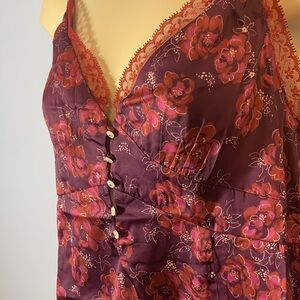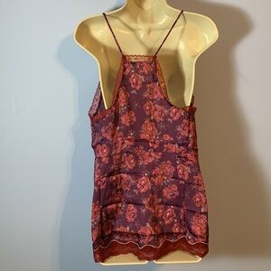 Intimately free people size med Floral Purple Red babydoll Cami satin lace NWOT
