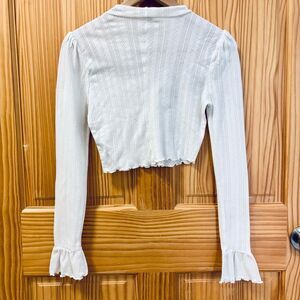 Intimately Free People Cream Ruffled Cropped Crop Shirt Top Tee Size S
