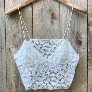One part bra, one part cami, this sheer lace brami has a V-neck with scalloped trims, soft-cup design, and thin straps.