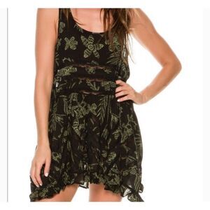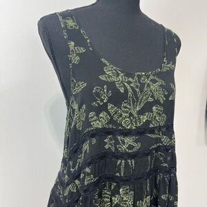 Intimately Free People Voile & Lace Trapeze Dress Rare Green Floral Print Sz Sm