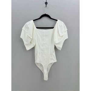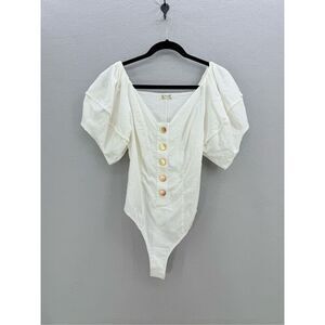 Intimately Free People Womens White Not So Basic Puff Sleeves Bodysuit Small