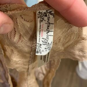Intimately Free People nude lace, racerback, no wire, comfortable, feminine bralette. More tan than the stock photo. In good, gently used condition. From a pet and smoke free house. Happy to bundle!