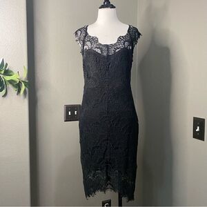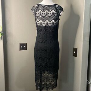 The perfect Halloween dress! Very sexy with soft, solid black bottom layer and sheer lace on top. Unusual fit.