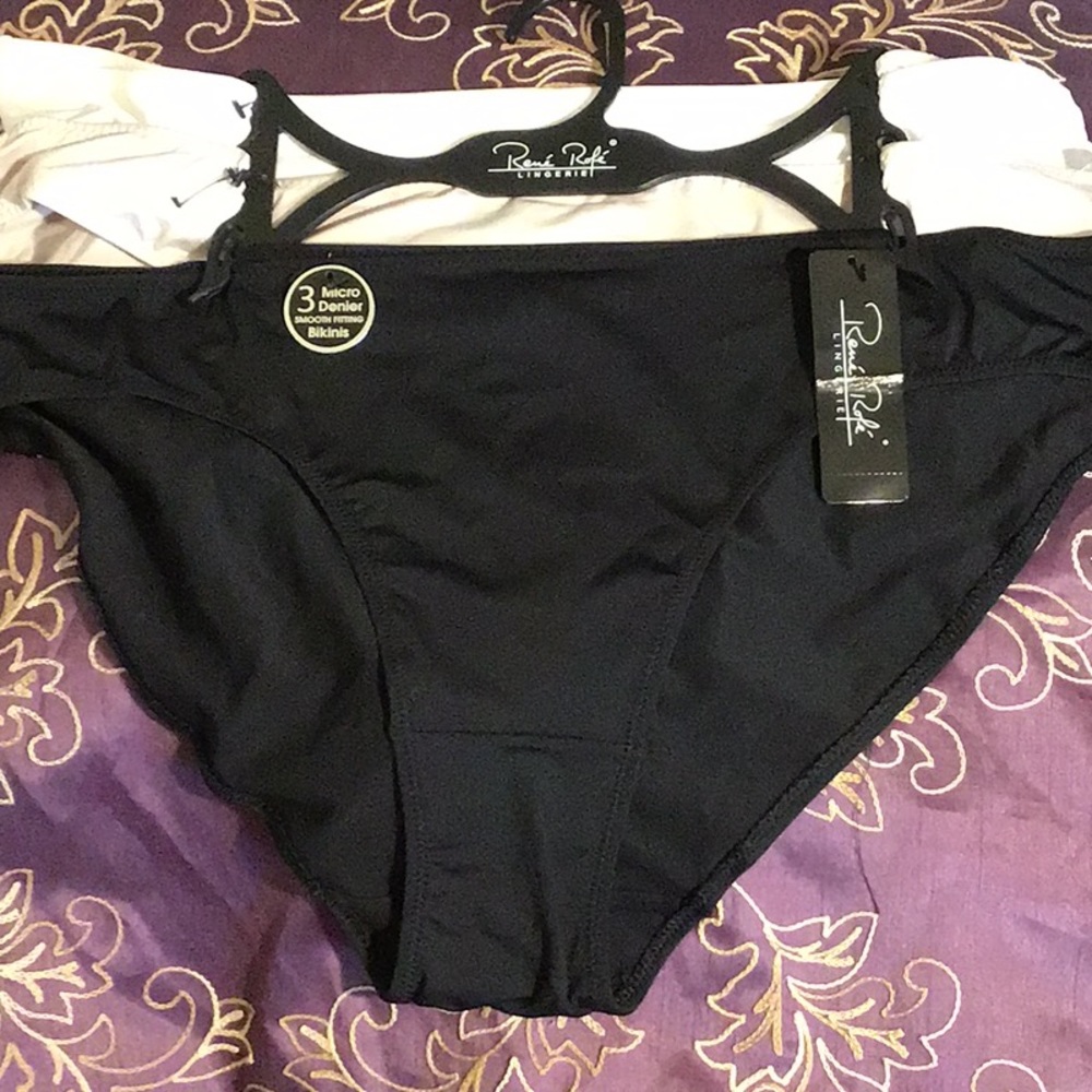 New…René Rofé 3 pk panties. Stylish bikini cut. Colors black, tan and white. 90% polyester, 10% spandex.
