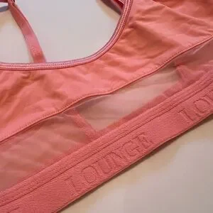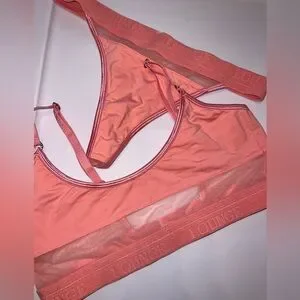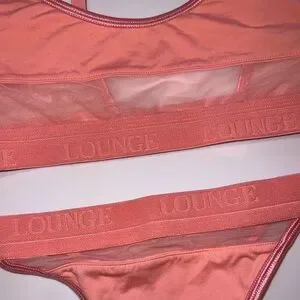 Lounge wear Bra and Thong set. Mesh detailing. Coral color, tag ripped out but both a size Small. Good condition. Barely ever worn. Mesh is in great condition (no snags). Attached pics on models from Lounge website (those sets are in different colors than the coral color I’m listing)