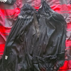 Black teddy with matching panties. There is a split on the seam from the seam being busted. It was like that when it arrived in the package. Never worn.
