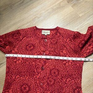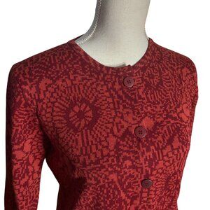 Intiwara Baby Alpaca cardigan sweater M medium red print crew neck Bolivia S