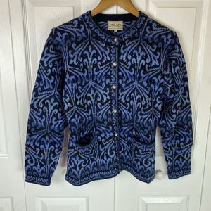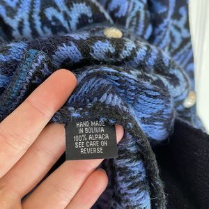 Intiwara M 100% Alpaca Sweater Cardigan Vintage Abstract Tapestry Silver button