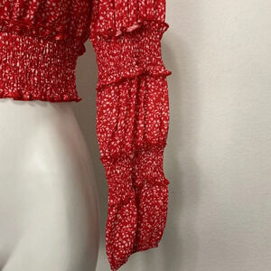 Into Red Ditsy Floral Bohemian Cropped V-neck Festival Y2K Hippie Top Size 8