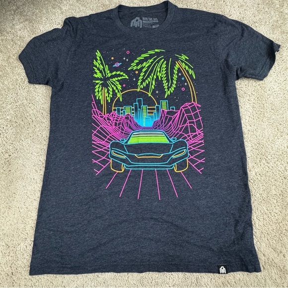 Into The AM Miami Vice Graphic Tee with Neon Car and Palm Trees Size M