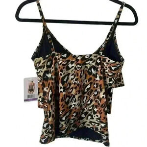 Into The Bleu Leopard Print Tankini Top Sz Small Ruffle Detail Adjustable Strap