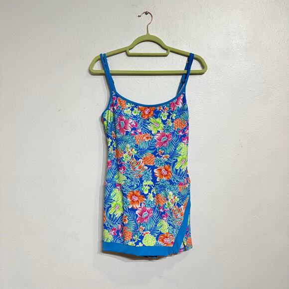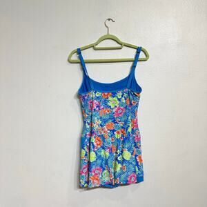 Into the Bleu by Amerex Blue Floral One Piece Swimsuit Dress Sz 10 NWT