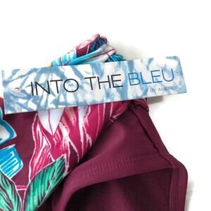 Into the Bleu by Amerex Womens Hipster Bikini Bottom Size 14 Maroon Floral Waist