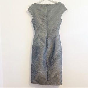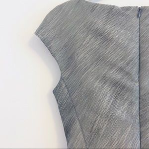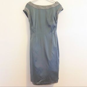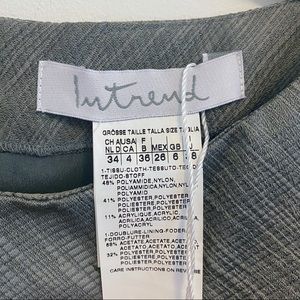 Cap sleeve dress with a wider bateau neckline. By Intrend which is the outlet brand of Max Mara. Form fitting dress. No stretch. Side drape ruching. Fully lined. Hits mid knee/just below the knee. It was always a little tight and now is just too small. I never ended up wearing it. Size says 4 but I think it runs small, like a 0/2. Please read measurements.
