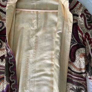 Color: Cream/Beige/Gold base with Burgundy, Plum, Gold, Brown embroidery