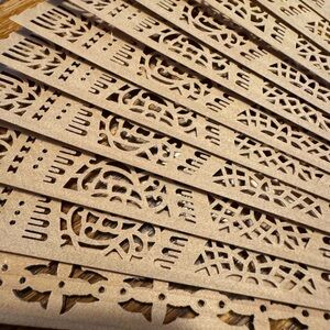 Beautifully crafted tan hand fan with detailed cut-out design. Perfect for elegant occasions. Measurements in description. Made in the people’s republic of China.