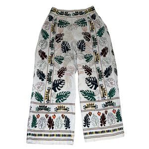 ZARA White Cotton/Linen Palm Leaf Embroidered Cropped Pants Size Small