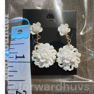 These exquisite earrings are a testament to the craftsmanship of a talented individual. Carved from delicate ceramic or porcelain, they boast a timeless and vintage-inspired design that is sure to captivate anyone who gazes upon them. Each earring showcases an intricate floral motif, carved with remarkable precision and attention to detail. The floral shape is a celebration of nature's beauty, capturing the essence of blossoming flowers frozen in time.