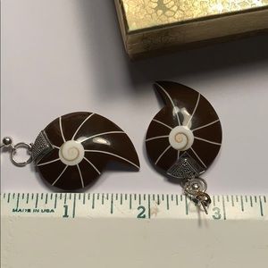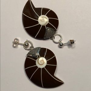 BNWOT - A gorgeous and intriguing pair of dangling brown real shell stud earrings with mother-of-Pearl abalone center, and 925 (marked) Sterling Silver. Purchased from a Key West, Florida Jeweler, never worn stored in my dresser. They are light on the earlobes and absolutely a spectacular item to add to your jewelry wardrobe! Price is FIRM! NO Offers!