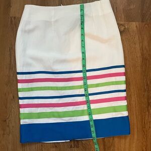 Intriguing Threads women's linen blend pencil skirt with multicolor stripes