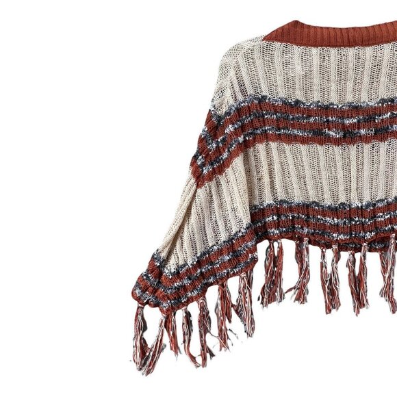 Intrigus Womens Large Poncho Fringe Biege Brown RN135641 Pullover