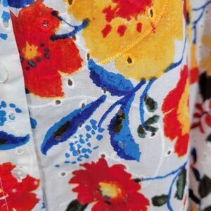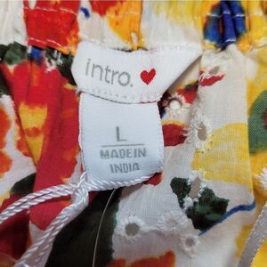 Intro Cotton Floral Print Eyelet Embroidered Women's Button Down Top NEW