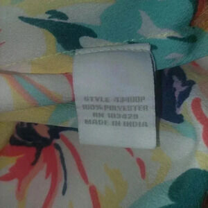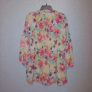 Intro. Heart Women 1X Plus Shirred Button Down Blouse EUC Yellow Coral Pink Blue
