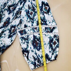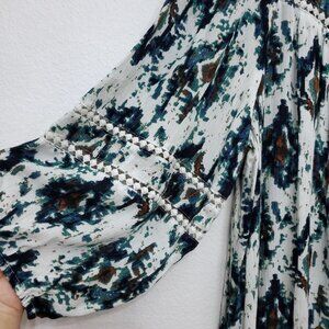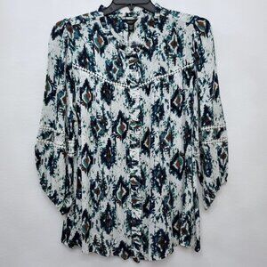 Intro Ikat Print Split Round Neck 3/4 Balloon Sleeve Women's Rayon Boho Top 2X