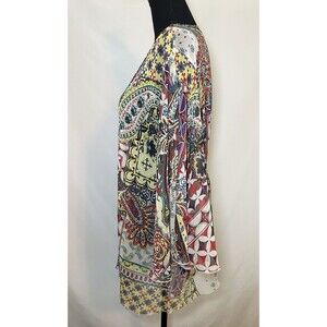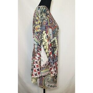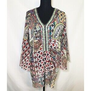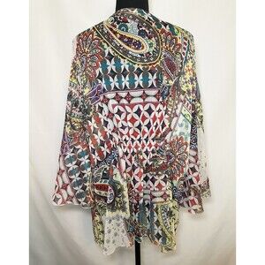 Intro Multi-Color Boho Flutter Sleeve Sheer Beaded Resort Wear Blouse Women 1X