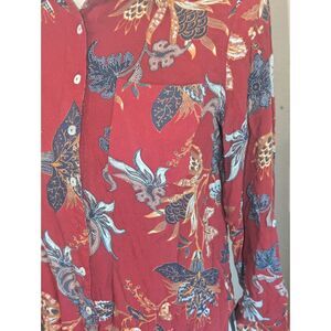 Intro. Petite PM Floral Print Roll-Tab Button-Up Blouse Red Rayon
