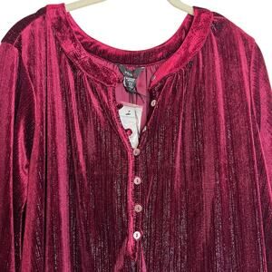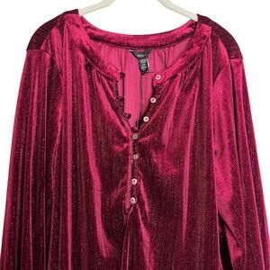 Intro Woman Plus Velvet Popover Tunic Top 2X Burgundy Metallic Long Sleeve