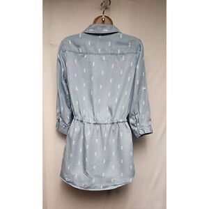 Intro. Womens Pineapple Print Tunic Blue Denim Blouse Button Shirt Size Small