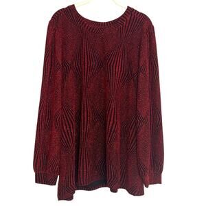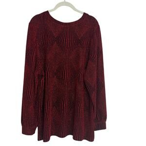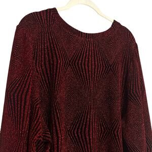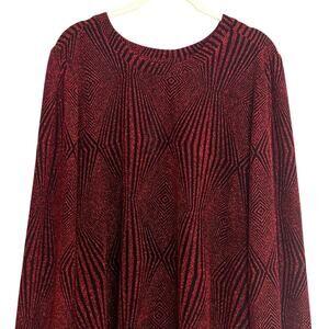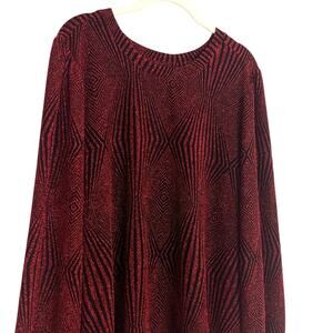 Intro Womens Shimmery Sweater 2X Red Black Metallic Geometric Long Sleeve