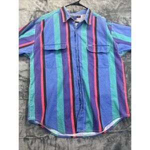 Introspect Shirt Mens L Button Up Multicolor Wide Stripe Academia Preppy