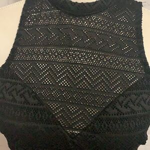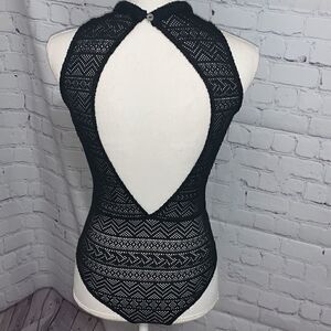 Intu Black Lace Sexy Backless Bodysuit Button closure at neck Snap closure at bottom Size S