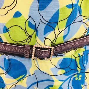 Intuitions sundress with belt size 8. Machine wash warm, tumble dry low. Selvedge Seam.