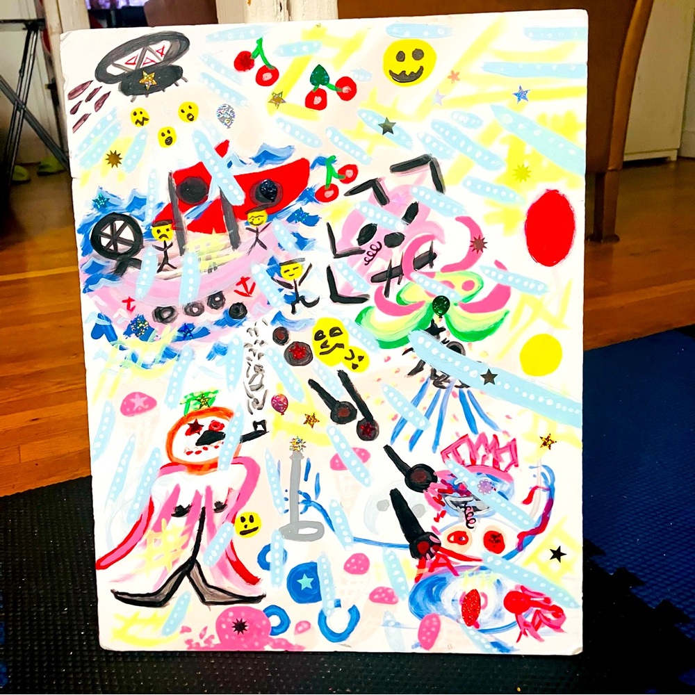 There’s so much funny crazy things going on. It takes a while to see it all every time you look at it you see something new. Unframed paintings. I’m willing to get framed you choose the frame. Agreeing to have me frame it with an extra cost. There will absolutely not return or refund of any sort. Framing cost unknown until you choose a frame. Thank you for reading and understanding. Trade Value is $2,400 select trades.