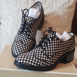 Edison Lace Up, black & white printed haircalf hounds tooth. Brand new - never worn . Flawless.