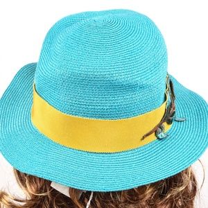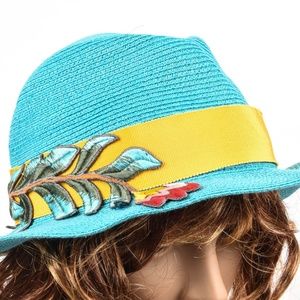 Straw hat from Inverni Firenze with ribbon and floral embellishments.