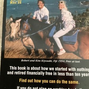 ~ For Sale: Robert Kiyosaki's Retire Young Retire Rich with Sharon L. Lechter, C.P.A. How to Get Rich Quickly and Stay Rich Forever! Only REF (reference) in black magic marker is on the back (stating it's a reference book for my company). Second photo shows Robert & Kim Kiyosaki on horseback on the island of Fiji in 1994. FREE AT LAST! Book is in EUC from a smoke-free home. This book is about how they started with nothing and retired in less than ten years. Find out how you can do the same. if you do not plan on working hard all of your life...this book is for you. Why not Retire Young and Retire Rich? AS WITH ALL MY LISTINGS, I DO NOT ACCEPT RETURNS; ALL SALES FINAL, THANK YOU. ~
